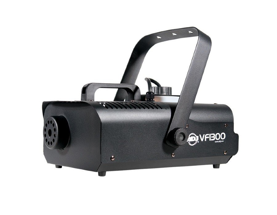 The ADJ VF1300 is a 1300W mobile Fog Machine that is great for mobile entertainers, medium size nightclub and bars, bowling centers and special effects productions that want to add atmosphere to their events, plus it allows people to see the beams from the lighting fixtures. The VF1300 is equipped with a high efficiency heater that quickly burns through the fog liquid. It comes with a 2.3 liter external fog fluid tank, has a fog fluid level indicator, comes with a wired remote control, and uses water-based fog fluid. Advanced features include: Electronic Thermo Sensing (ETS) for optimum heating levels, and a low fog fluid shut off sensor to protect the pump. An optional wireless remote is available separately. The VF1300 includes two remotes: one wired and one wireless remote.