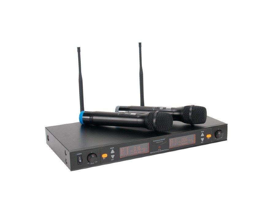 2-channel UHF wireless microphone system with 100 channels per receiver The American Audio WM-219 is a 2-channel UHF wireless microphone system that includes two wireless microphones, two different color coded rings (to differentiate each microphone) and a wireless receiver with individual volume control and audio input for each microphone.