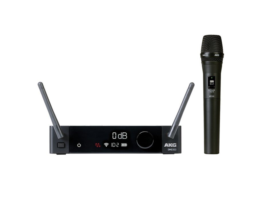 AKG DMS300 professional digital wireless systems for performers and presenters combine signature AKG sound quality and eight channels of rock-solid, license-free 2.4GHz operation with advanced security features, extended battery life and the ultimate ease-of-use. The DMS300 is available in two options: with a high-quality, AKG handheld microphone or with a bodypack. The bodypack is instrument ready and can also be combined with a wide range of AKG headsets or clip-on mics (available separately) for singers or presenters. Leveraging more than 70 years of AKG microphone engineering and offering 24-bit/48 kHz uncompressed audio coding, the DMS300 provides crisp, studio-quality sound with none of the interference found in analog wireless systems. Combined with ultra-low latency, these features make the DMS300 is a joy for singers and instrumentalists. And with the signal security provided by AES 256-bit encryption, presenters can feel at ease in confidential settings. Unrivaled fidelity, security and performance make the AKG DMS300 the ideal digital wireless solution for performing musicians, corporate and government presenters, houses of worship, fitness instructors, educators and anyone who seeks both studio-quality sound and freedom of movement onstage.