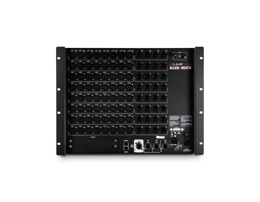 The MixRack is the heart of any dLive system. It houses the XCVI processing core complete with audio I/O, control and audio networking ports. It is typically connected to a dLive Surface, but can also be controlled at the same time as or even without a Surface using a laptop or iPad, Allen & Heath IP remotes or third party controllers via TCP/IP.