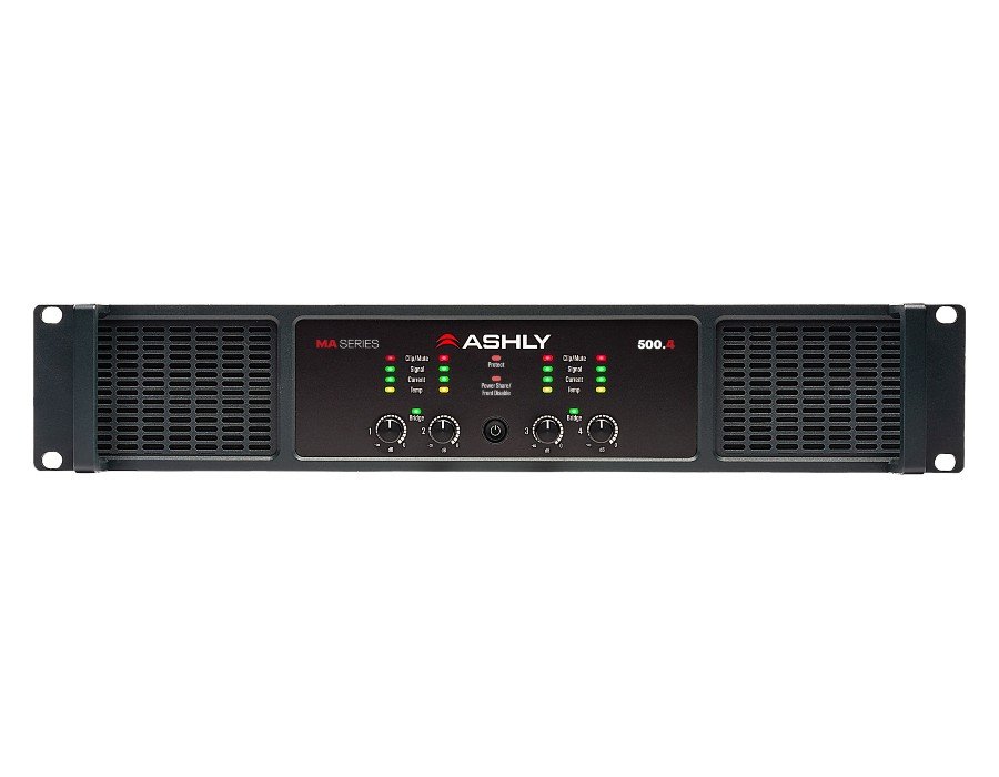 The Ashly MA-500.4 power amplifier blends industrial strength with advanced power management, offering four 500W channels, power sharing capabilities (up to 1,000W per channel), and bridging options.