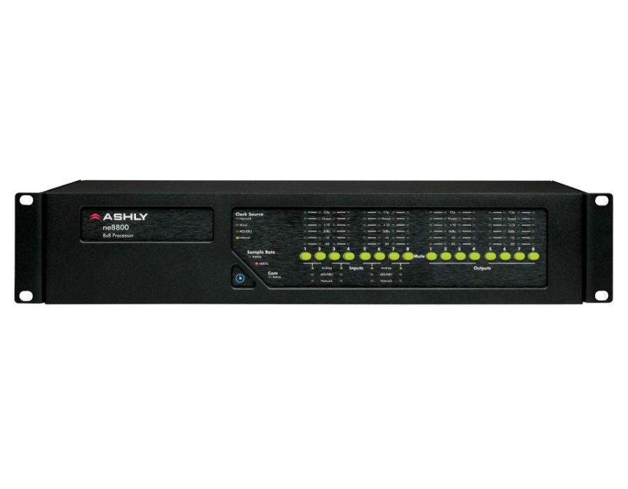 he Ashly ne Series DSP processors are designed for optimum flexibility and ease-of-use in a range of professional and commercial applications. The ne Series is available in three versions: the ne4400 (4 in x 4 out), the ne 4800 (4 in x 8 out) & ne 8800 (8 in x 8 out). Rear module slots can accommodate a choice of available factory-installed options, including: 4-channel input mic preamps, 4-channel AES/EBU, Cobra Net & Dante Network audio cards.