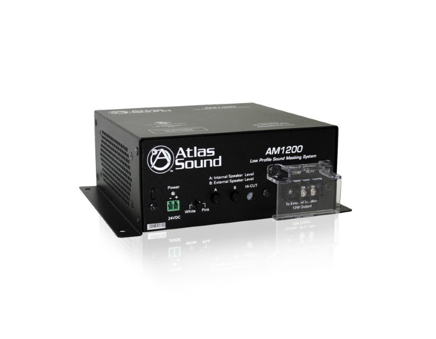 The AM1200 also features an external 12 Watt 70.7V amplifier output to drive other 70.7V speakers, such as the AtlasIED M2000-SM transducer, making it ideal for small installations that require a self-contained masking system.