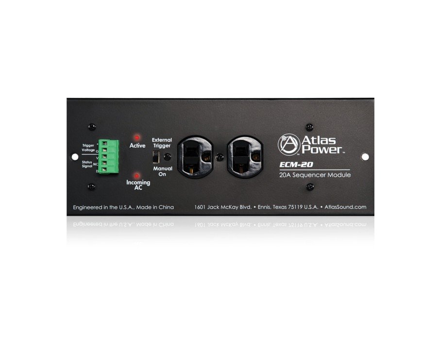The Atlas Power ECM-20 is a 20A Power Conditioner and AC Spike Suppressor that is designed to be used as a standalone unit or in conjunction with an ECS unit up to 1000ft away. The ECM-20 features AC Spike and Surge Suppression, AC Mains Voltage monitoring, EVS circuitry, and Remote Activation.
