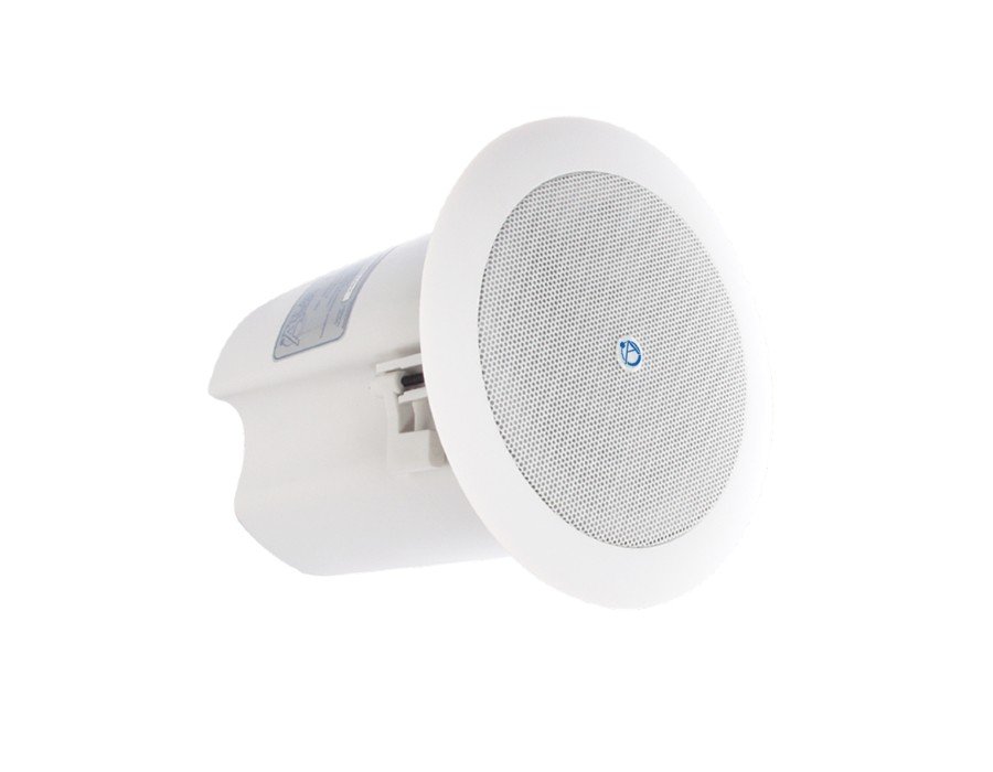 Designed to provide high performance in a very compact footprint, the FAP40T appeals to both system designers and architects. FAP40T is ideal for high-intelligibility voice, music, and signal reproduction in commercial, industrial, and institutional applications. A unique (patent pending) tap selector switch design allows for easy system tuning. A full selection of taps up to 16 watts as well as an 8 ohm transformer bypass setting is included for maximum system versatility. This switch «knob» also functions as a diffuser cone, providing smooth, even dispersion of the high frequency content from the center of the 4″ polypropylene driver. In fact, the high frequency response of the FAP40T is so natural that many would assume that the driver in the FAP40T was a coaxial design instead of a single cone driver. Low frequency response is enhanced by the tuned and ported enclosure design. The enclosure (UL1480 pending) is constructed of high impact injection molded plastic and includes a press fit grill design that blends quite well with contemporary architecture. A two pole terminal strip housed below a metal removable cover on the back of the FAP40T enclosure allows for easy system wiring as well as «daisy chain» wiring to other FAP40T’s or even FASUB70 subwoofers (a great combination!).
