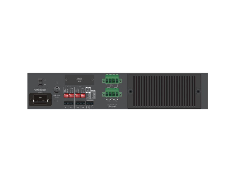 The HPA Series features front panel detented level controls with a security cover, remote turn on, balanced inputs, fault reporting and an accessory card slot for an optional Dante™ 4-channel digital audio interface. Cooling is not an issue because of the unique output stage low resistance direct couple thermal transfer design. HPA also is energy efficient and meets Energy Star standards with only drawing 1W of power in standby mode.
