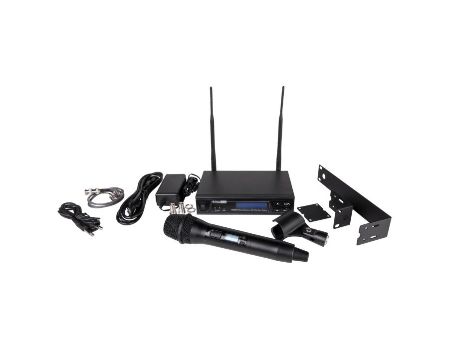 The MWHHM is a handheld wireless microphone transmitter that can be used with either two standard alkaline or rechargeable NiMH AA batteries. The MWHHM can provide up to 16 hours of usage when using rechargeable NiMH batteries. The integrated LCD displays channel, frequency, and battery level for easy identification when pairing the unit to the receiver.