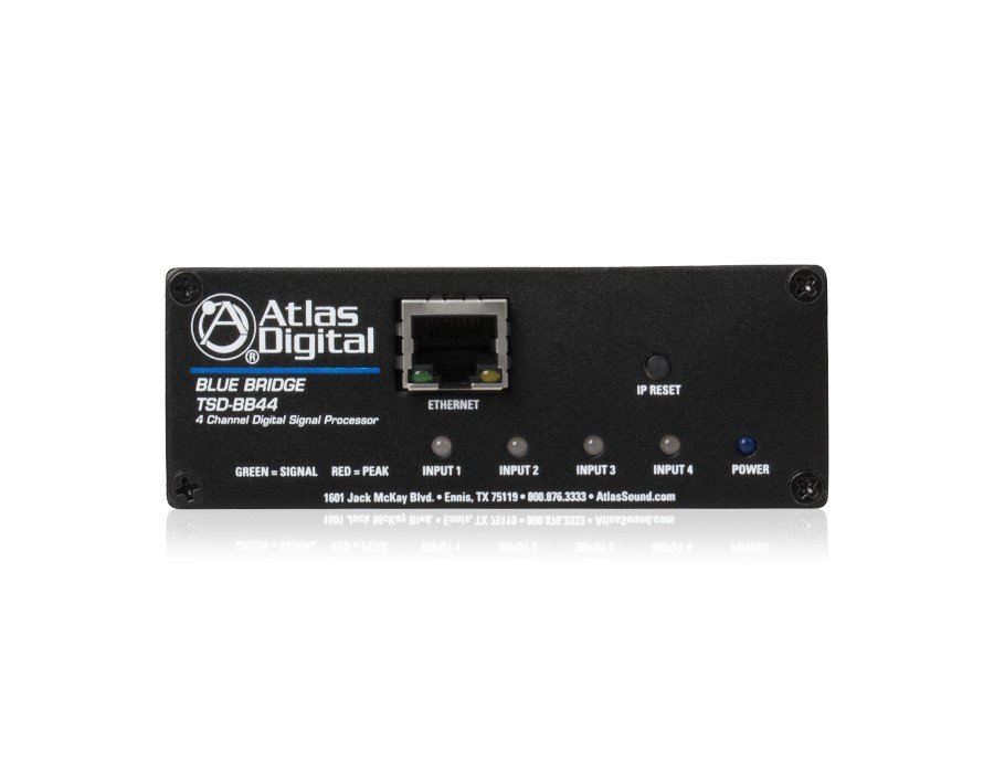 AtlasIED BlueBridge® networkable DSP devices are powerful and flexible tools offering mission critical solutions to satisfy the exact needs of any installation. Engineered to strict standards with the highest quality internal components, BlueBridge devices provide pure clean audio, Ethernet connectivity for cost effective TCP/IP control and easy programmability. Intended for a variety of audio applications, BlueBridge® DSP platforms are cost effective solutions for the most demanding applications including video conferencing, house of worship, presentation rooms, conference rooms, courtrooms, room combining, restaurants, multi-zone paging, background music, and many other sound reinforcement and AV applications.