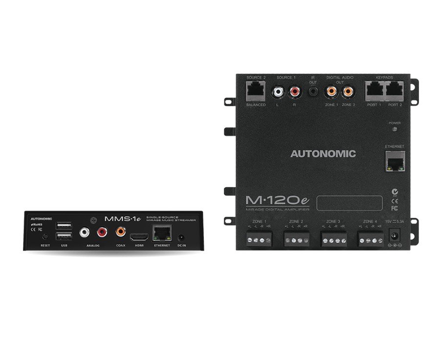 Deliver pure, reference quality audio with the Autonomic Audio System. This complete whole-home audio solution distributes local music libraries, in addition to the most popular online streaming services. This kit includes (1) AU-MMS-1E and (1) AU-M-120E. All Autonomic Audio System kits include the Mirage Media Controller app, available for free in the Apple App Store, Google Play Store, and Amazon App Store.