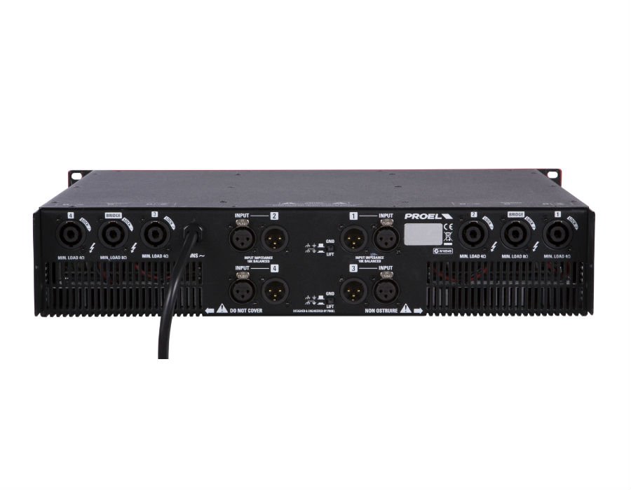 AXIOM QC series amplifiers are high performance 2U rack mount models with built-in DSP, designed for powering large touring PA systems or loudspeaker systems in high-profile fixed installations. They are available in standard two channel configurations for powering typically a pair of full range loudspeakers or frequency band of a stereo multi-way speaker system; or in a four channel format for use with large multi-cabinet PA systems or for multiple monitor mixes. QC series amplifiers are fully networkable using the highly stable CANBUS protocol, so making it possible to set up and control a large network of devices – including amplifiers, powered speakers, and PROEL PC260 speaker processors – in a complex fixed install.