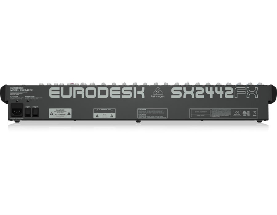 The 24-Input, 4-Bus EURODESK SX2442FX allows you to effortlessly achieve premium-quality sound, thanks to 16 of our studio-grade XENYX Mic Preamps, 2 full stereo channels with 4-band EQ, plus 2 additional sets of stereo inputs channels with Level and Aux controls. All mono channels feature our ultra-musical, 3-band “British” channel EQs, complete with a semi-parametric mid band for the ultimate in sound sculpting. Add to this not one, but two of our 24-bit dual-engine stereo FX processors with 99 awesome presets including reverb, chorus, flanger, delay, pitch shifter and various multi-effects – and the SX2442FX becomes an incredibly versatile mixer for your recording projects and live performances.