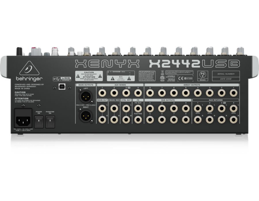 The feature-packed XENYX X2442USB mixer allows you to effortlessly achieve premium-quality sound thanks to 10 onboard studio-grade XENYX Mic Preamps and ultra-musical “British” channel EQs – with a semi-parametric mid band for the maximum flexibility in sound sculpting. And our easy-to-use “one-knob” compressors provide total dynamic control for the ultimate in punch and clarity, while respecting all the power and emotion you pack into every note. Add to this our 24-bit, dual-engine Multi-FX processor with 16 editable, professional-grade presets including reverb, chorus, fl anger, delay, pitch shifter and multi-effects – and the X2442USB becomes an incredibly versatile mixer for your live performances. But the X2442USB wasn’t just designed to handle your live gigs; it also provides the state-of-the-art tools you need to make stunning, professional-quality recordings. Along with the built-in USB/audio interface, the XENYX X2442USB comes with all the recording and editing software needed to turn your computer system into a complete, high-performance home recording studio.