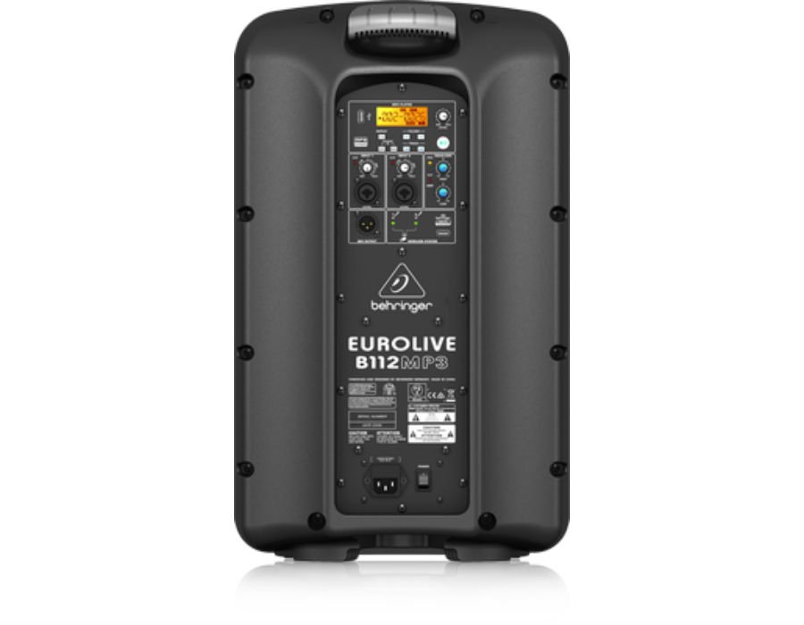 The EUROLIVE B112MP3 active loudspeaker is exactly what you’ve come to expect from BEHRINGER — more power, more features and absolutely more affordable! Our engineers have really outdone themselves, creating a self-contained PA solution that merges state-of-the-art, 1,000-Watt Class-D power amp technology with an integrated 2-channel mixer, built-in wireless microphone capability, a high performance MP3 player and exceptional portability. This professional active loudspeaker is destined to become a legend in its own right, alongside the other EUROLIVE models that have made BEHRINGER the world leader in active loudspeakers.