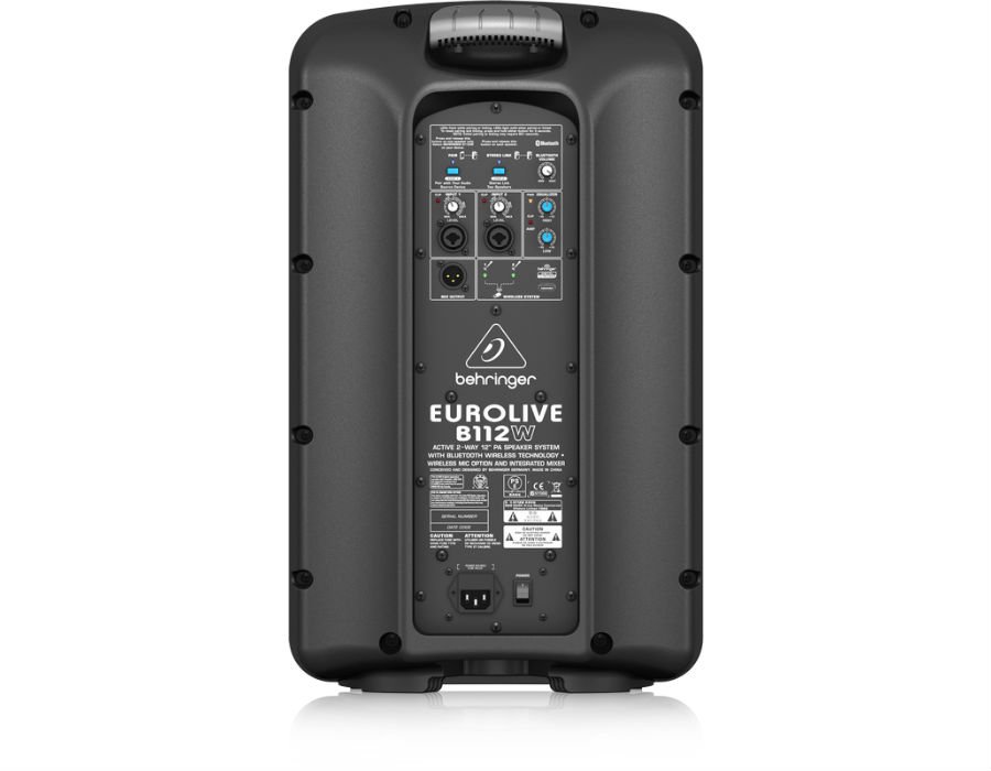 The EUROLIVE B112W active loudspeaker is exactly what you’ve come to expect from BEHRINGER – more power, more features and absolutely more affordable! Our engineers have really outdone themselves, creating a self-contained PA solution that merges Bluetooth wireless technology, state-of the-art 1,000-Watt Class-D power amp technology, built-in wireless microphone capability, an amazing 2-channel mixer – and exceptional portability. The B112W professional active loudspeaker is destined to become a legend in its own right, alongside the other EUROLIVE models that have made BEHRINGER the world leader in active loudspeakers.