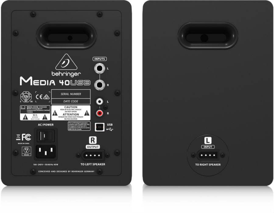 With its 150 ultra-clean Watts of digital output, delivered through separately-powered drivers via a true bi-amping mode with 2 amplifiers per speaker, the MEDIA 40USB delivers high-resolution sound that really brings out the best in your music. You will notice that most competitors apply simple passive crossovers, which not only inaccurately separate the frequency spectrum, but most importantly impact the drivers’ performance. Behringer has gone the extra mile, driving each woofer and tweeter with a separate amplifier for absolute signal integrity.