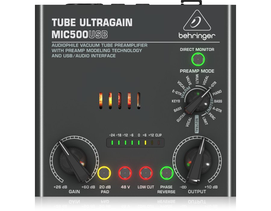Tubes can really warm up a signal fast, giving it depth and character. Though transistors have succeeded the technology, many musicians agree that tubes deliver a far superior sound. The TUBE ULTRAGAIN MIC500USB’s handselected 12AX7 vacuum tube gives everything from microphones to acoustic or bass guitars that vintage tube vibe – in a dependable and ultra-affordable package.