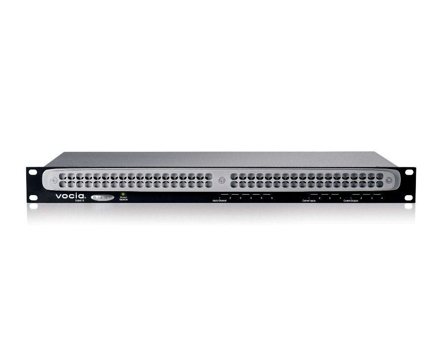 The VI-6 is a networked audio input expansion device allowing the user to add six channels of background music or user-configurable audio to a Vocia® system. It accepts four stereo analog inputs and two microphone/line level inputs, and provides six channels of digital audio output via CobraNet.® The VI-6 features embedded DSP and on-board memory to process and store all device-specific configuration information locally and includes comprehensive, fixed-chain digital-signal processing. As part of the Vocia system, the VI-6 meets paging requirements for facilities of all sizes.