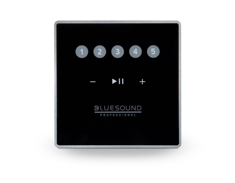 The Bluesound Professional CP100 is a low profile wall-mount control panel for all Bluesound Professional players. It features sleek design with a glass control panel with illuminated touch sensitive controls. It is possible to recall presets, pause music/mute and adjust volume in the zone that the panel is controlling. The CP100 is designed to fit flush to the wall or mounted in a large variety of international backboxes for ease of installation. The control panel controls illuminate as needed, and can be locked to protect against unintended or unauthorized use.
