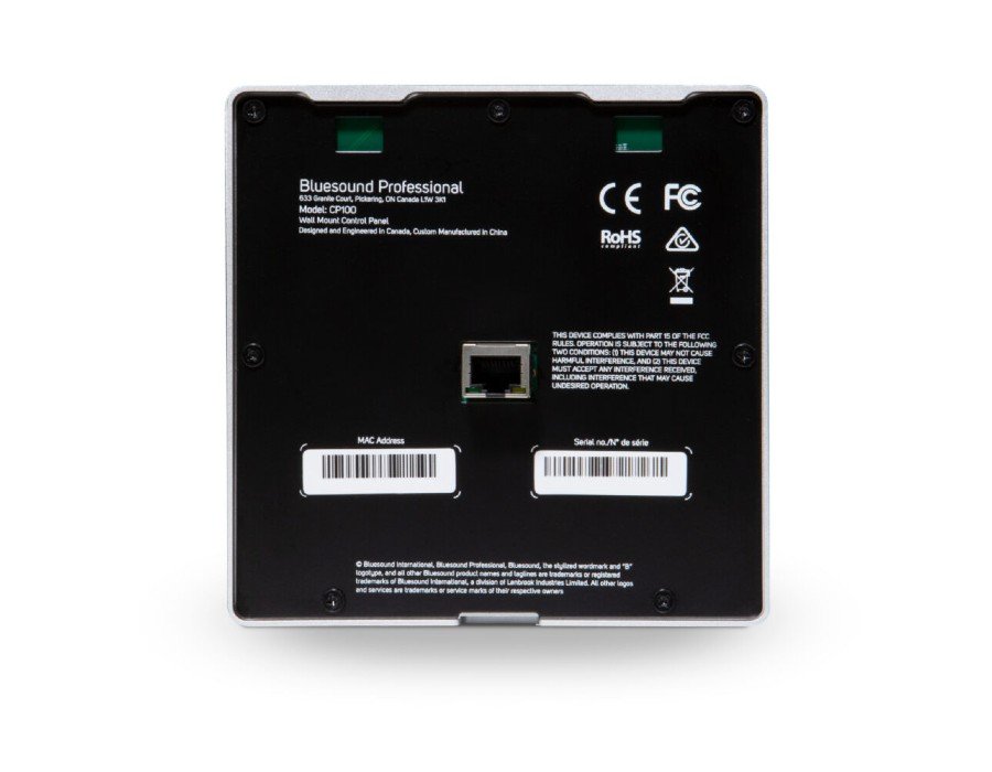 The CP100 is powered by PoE and sits on any BluOS network with easy connection through RJ45. Back panel allows for pre-mounting with front clicked in afterwards. Multiple CP100s can be utilized in a zone.