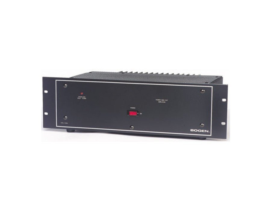 The HTA125A from Bogen is a 125W power amplifier that uses MOSFET technology for superior performance and reliability. This versatile amp drives a variety of loads such as 25/70V and 4/8 ohms. The HTA125A has thermal protection to deliver full output even at temperatures up to 131°F. Additional protection is provided by electronic overload limiting, short circuit protection, and a Slo-Blo fuse. Electronic shutdown circuitry is automatically activated if an overload or short occurs and the front-panel overload shutdown LED illuminates. Once the cause has been rectified, the unit automatically resets.