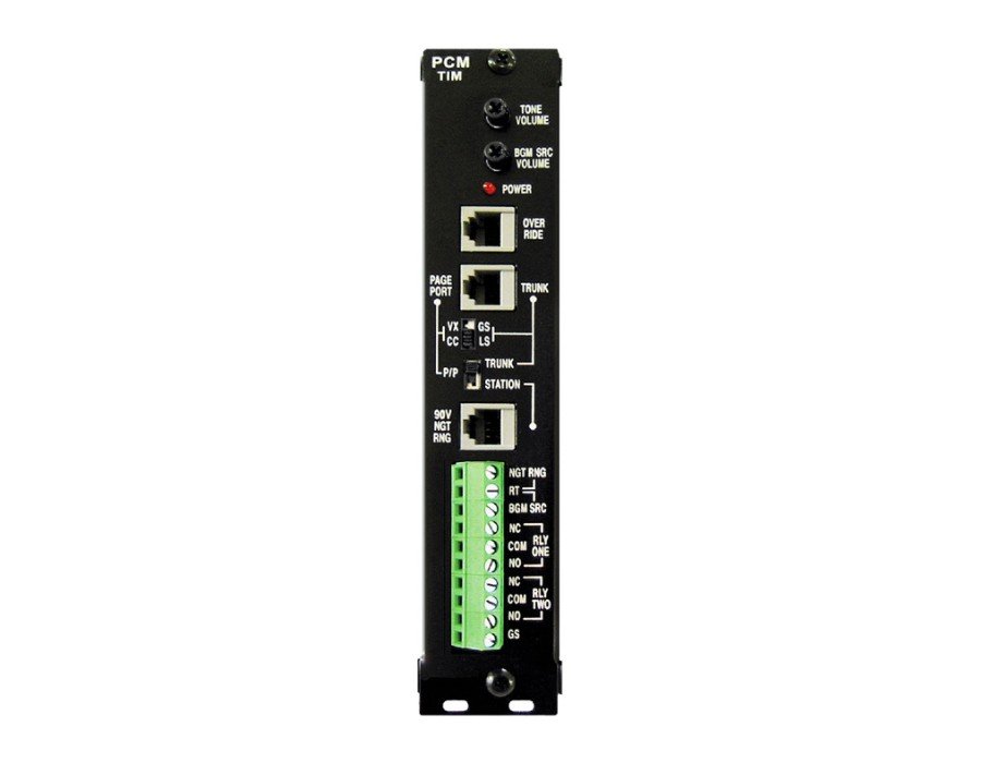 The Bogen Communications PCMTIM Telephone Interface is one of the modules that make up the entire PCM2000 paging system. The module features provisions for a telephone input, night ring control, background music support and override control. Tone and Ring volume adjust dials are located on the rear. The interface mounts into a standard.