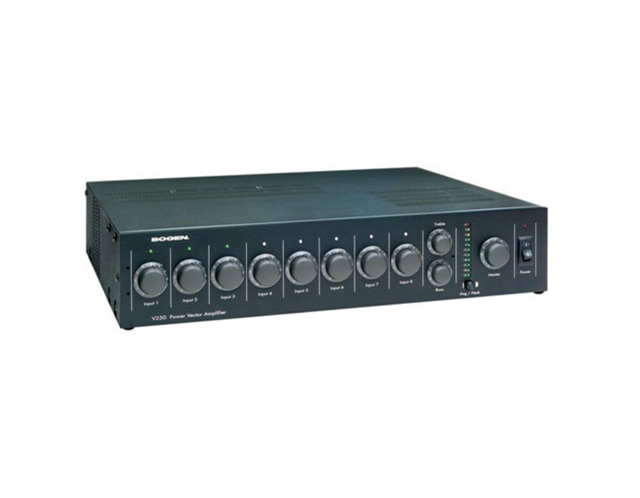 Bogen’s Power Vector modular input amplifier series consists of five models, ranging from 35- to 250-watts of power. Each model accepts up to 8 plug-in modules with 4 levels of priority between modules. Two module bays also accept signal-processing output modules.