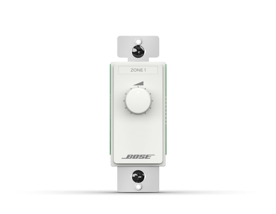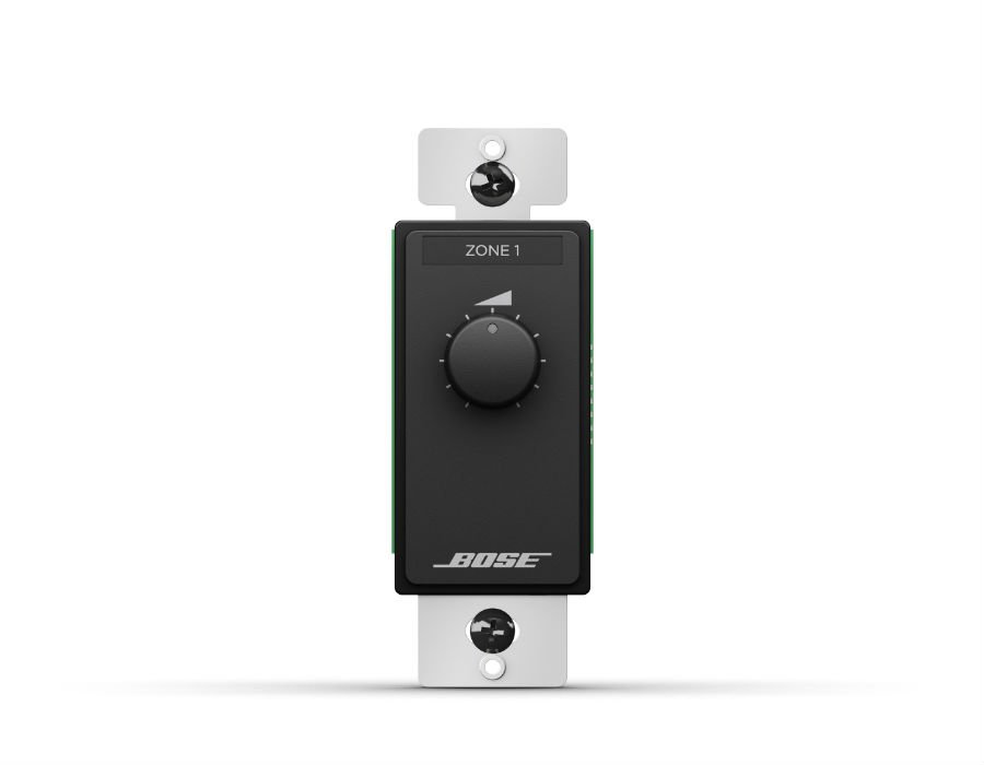 Bose ControlCenter CC-1, zone controllers provide volume control for FreeSpace®, PowerShare, and ControlSpace® products. Three models are available in either black or white and fit 1-gang electrical boxes in North America. The zone controllers use Cat 5 wiring and can be daisy-chained using the two RJ-45 connectors for simplified wiring.