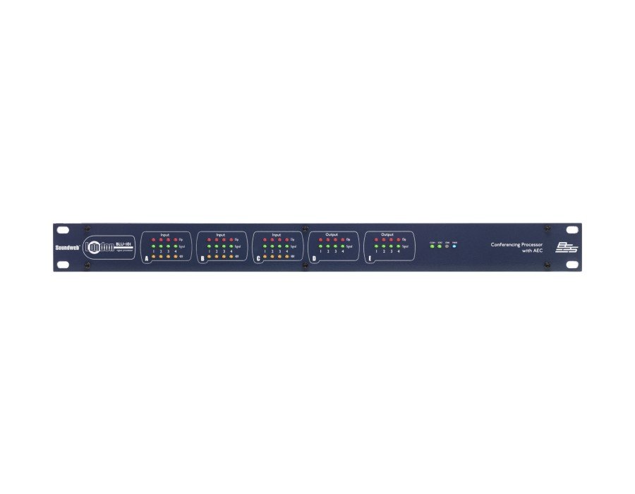 The Soundweb London BLU-101 offers a fixed configuration of 12 analog inputs and 8 analog outputs, configurable signal processing, AEC processing, and a high bandwidth, fault tolerant digital audio bus.