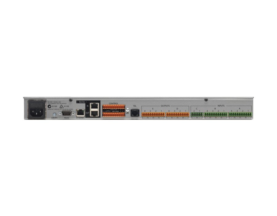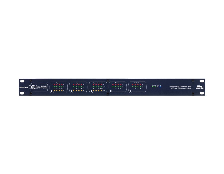 The Soundweb London BLU-102 offers a fixed configuration of 10 analog inputs and 8 analog outputs, an analog telephone interface, configurable signal processing, AEC processing, and a high bandwidth, fault tolerant digital audio bus.