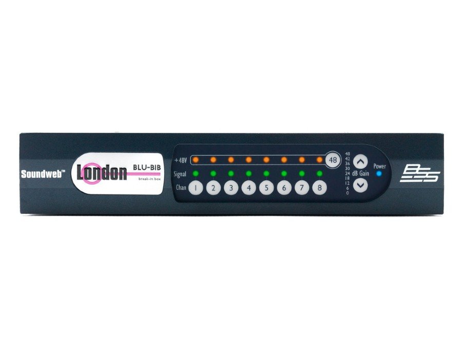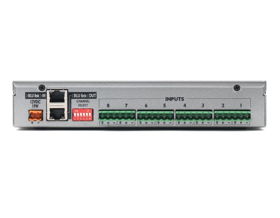 The Soundweb London BLU-BIB or “break-in box” offers 8 channels of analog audio input expansion via the Soundweb London high bandwidth, fault tolerant digital audio bus.