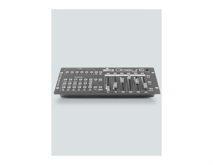 Obey 6 is a universal, compact controller capable of controlling up to 6 channels per fixture. It allows you to control effects by simultaneously operating each fixture in different playback modes, with variable fade times. Increase flexibility with playback options that include manual RGBAW+UV, automated and sound-activated mode. Increase control with adjustable audio sensitivity, strobe, and blackout effects.