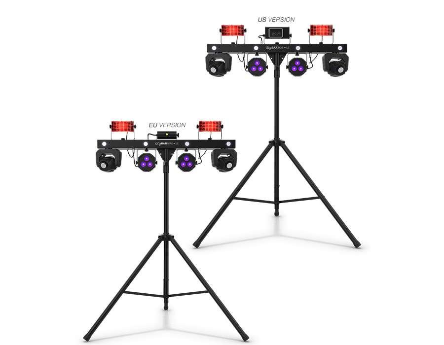 - 5-in-1 lighting system that includes moving heads, derbies, washes, a laser and strobe effect pre-mounted on a single bar