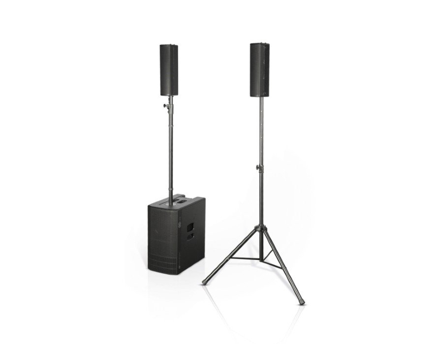 The ES1203 bundle comes with sub cover, a bag for tops, a telescopic 35mm pole, 2 7m speakon cables and power cable.