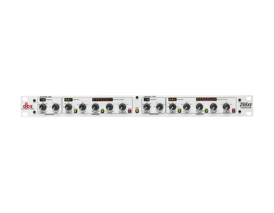dbx knows compressors…after all we invented them! The 266xs is the latest in a long line of the world’s most successful compressors from the inventors of the technology. Its patented Overeasy® compression technology provides smooth and musical performance while the AutoDynamic™ attack and release controls, found only on dbx compressors, puts great sound within easy reach. The 266xs can operate in stereo or dual-mono modes, has true RMS power summing and features quality XLR and 1/4″ TRS inputs and outputs. It cuts no corners on visual feedback with gain reduction metering and easy-to-read backlit switches.