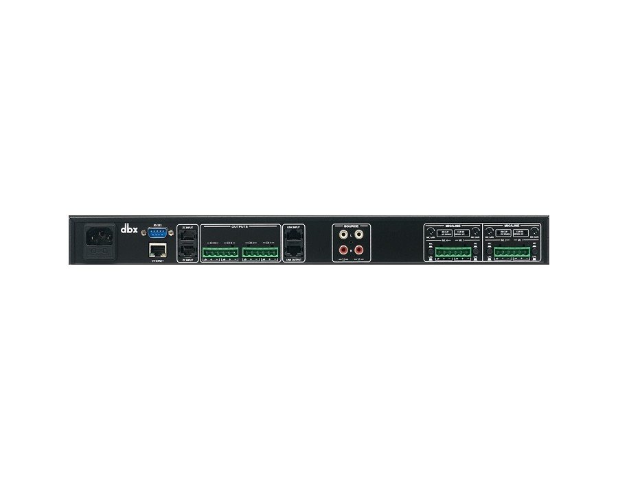 The ZonePRO 641m offers fixed I/O, pre-configured architecture, configurable insert processing and optional duplication of audio channels to another ZonePRO device via a link bus.