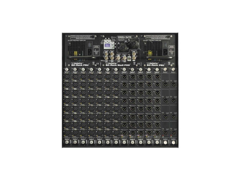 The SD-Rack’s 14 slots give you up to 56 inputs and 56 outputs, and users can choose whether to include the Optocore optical fibre connectivity or connect the SD-Rack to the console using MADI. When running at 48kHz, the two MADI ins and outs provide 56 fully redundant input and output channels via duplicate connections. When running at 96kHz, the SD-Rack delivers a full complement of 56 channels of MADI across the dual MADI ports.