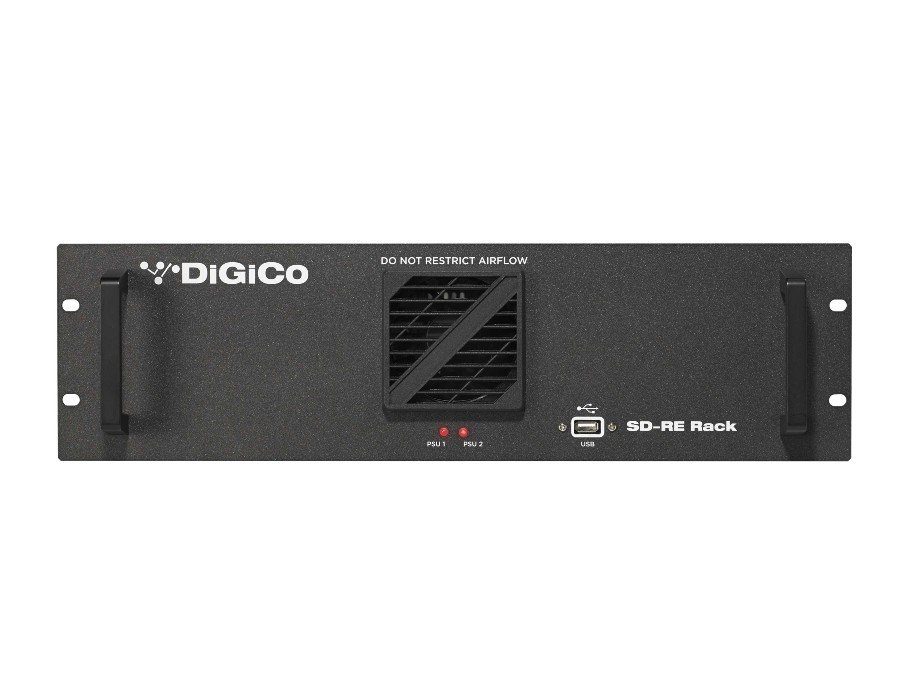 The SD-RE is a redundant engine for a DiGiCo SD10 console. It can connect to a 12-fader remote worksurface and a screen, keyboard and mouse.