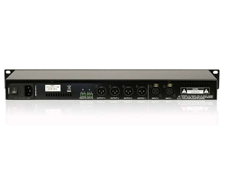 - 2 audio inputs x 4 audio outputs, all balanced