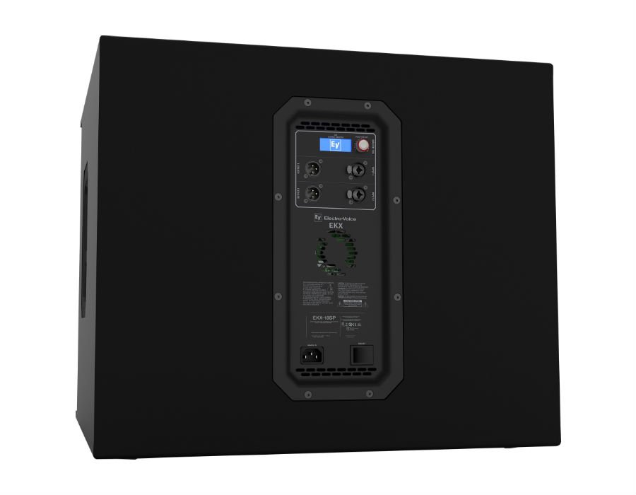 • High-efficiency 1300 W Class D power amplifier delivers up to 134 dB peak SPL on the EKX-18SP utilizing high-sensitivity transducers designed and engineered by EV.