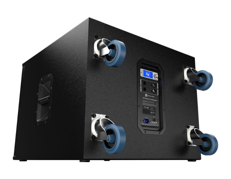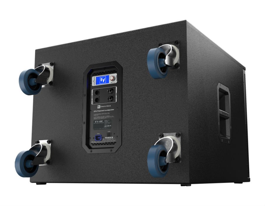 The enclosure is constructed out of 18-mm plywood finished with EVCoat. Subwoofers include professionalgrade castors, and combination pole mount receptacle for threaded and unthreaded loudspeaker poles. ETX Powered Loudspeakers combine EV-engineered intelligent DSP, high-powered amplifiers and high-efficiency transducers to deliver that legendary