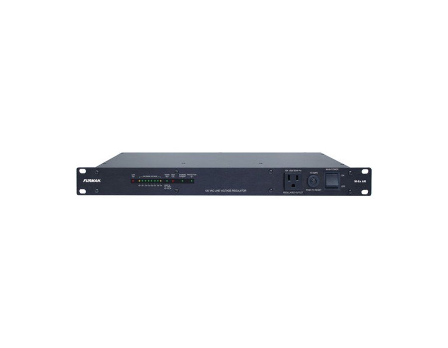 The M-8x AR Voltage Regulator from Furman is intended to protect your sensitive electronic equipment from problems caused by AC line voltage irregularities such as brownouts, sags, and over-voltage conditions. Such irregularities can cause audio tonal changes, digital equipment malfunctions such as loss of MIDI programs or other data, or in extreme cases, permanent damage. The M-8x AR can be used in a variety of pro audio and A/V applications common in studio recording, live sound reinforcement and other scenarios.