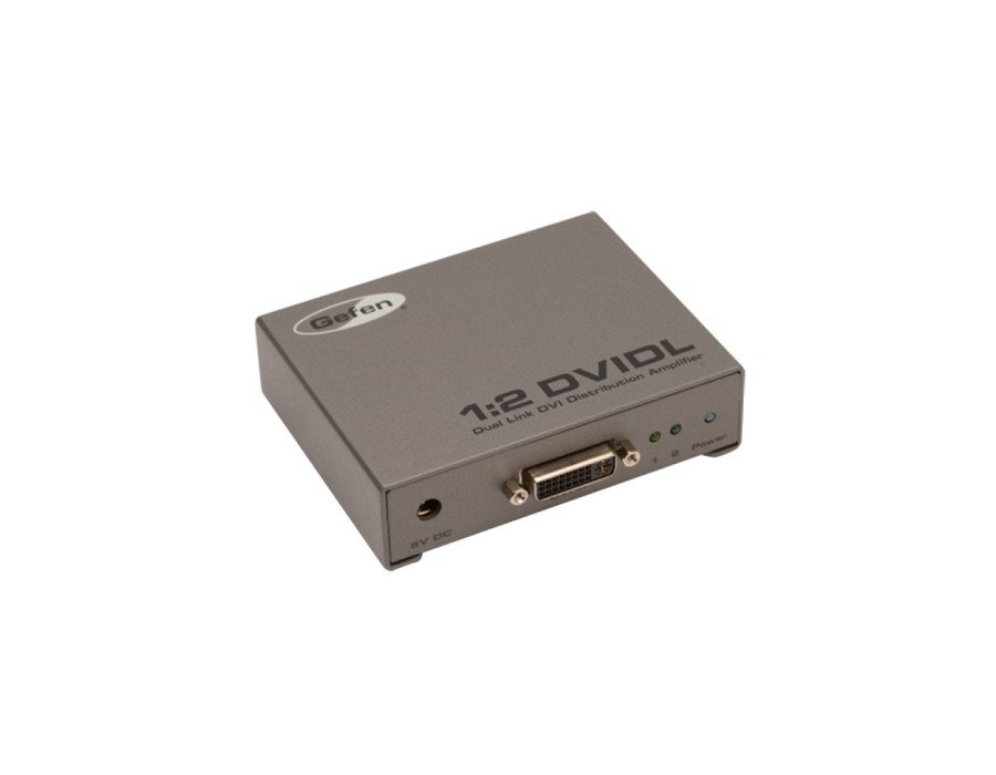 The new and improved dual link 1:2 DVI DL Distribution Amplifier splits video using a dual link DVI source such as a computer to two DVI dual link outputs such as monitors, without losing picture quality or the high resolution. Multiple1:2 DVI DL units can be cascaded from one to the next to create a flexible Dual Link DVI distribution system that can connect to multiple displays.