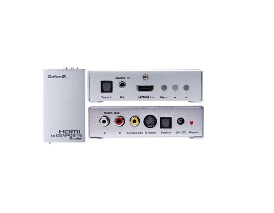 The GefenTV Composite to HDMI Scaler takes either Composite or S-Video as input and converts it to digital HDMI video, scaling it up to a maximum output of 1080p resolution (or 1920×1200 when used with a computer monitor).