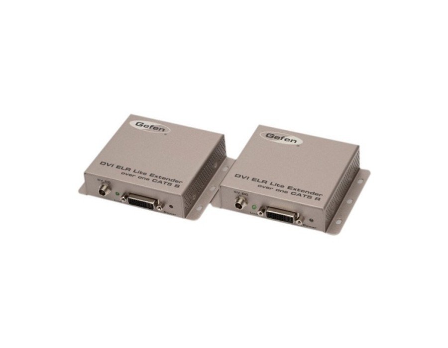 The DVI ELR Extender over one CAT5 allows the extension of a DVI source to a display, up to 495 feet (150 meters), using a single CAT-5e cable. This product is capable of HDCP and HPD pass-through. It can also be configured by the installer via DIP switches for maximum range or maximum bandwidth, and for low power consumption (auto sleep mode) or always-on operation. The DVI Extender over one CAT5 uses Gefen’s ELR implementation of HDBaseT™ technology, allowing the DVI signal to travel along a single CAT-5e or better cable, reducing cable costs and facilitating installation..