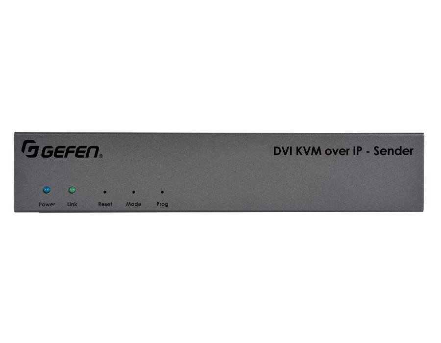 The new KM Emulation feature facilitates real-time, simultaneous Keyboard and Mouse control of each source from all connected workstations, eliminating the inherent limitations of earlier systems. Power-over-Ethernet allows the Sender and Receiver units to be powered through a standard PoE-enabled IP network switch, without the need for external power supplies. When used in conjunction with the EXT-CU-LAN Matrix Controller, system configuration is automated and quick. Its MFU (Mass-Firmware-Update) feature keeps the entire system up-to-date without the need to access and upgrade each unit separately. Enhanced network security by separating the control and AV networks is also made possible with the EXT-CU-LAN. Other control options include front panel buttons, web server interface, Telnet, UDP, and the Gefen Keyboard Switching Controller software (available for download  Gefen’s Enhanced API provides added functionality and facilitates use with third party controllers. The Gefen Gen 2.0 AV over IP products have been specifically designed for use with the Gefen Syner-G™ software, available for download The Gefen Syner-G™ Discovery and Show-Me features greatly simplify initial IP configuration. Each cable run from a Sender to a Receiver or from a Sender or Receiver to the network switch can be up to 100 meters (330 feet). A built-in 2-port Gigabit switch on the Receiver allows daisy-chaining of additional Receivers or other IP-enabled devices. In applications such as digital signage, where there is a need to replicate content on multiple displays, the ability to cascade Receivers removes the requirement for each cable to be run directly to the main network switch, thereby extending the range of these units far beyond the limits of a point-to-point video distribution system. The Sender and Receiver can be used as KVM extenders in a one-to-one system, or as nodes in a virtual matrix environment where any source can be routed to any or all displays, supporting up to 39,900 Senders and a combination of over 65,000 units. Applications include high performance AV and signage systems in sports bars, clubs, restaurants, board and huddle rooms, command and control centers, museums, airports, classrooms, auditoriums, hotels, and retail establishments. The Sender features a 1U tall and half-rack-width enclosure, perfect for rack-mounting using the Gefen EXT-RACK-1U-GRY rack tray (available separately). It can also be surface-mounted or be placed on a shelf. The low-profile Receiver unit is also rack-mountable using the rack tray, and it can be surface-mounted or placed on a shelf. When used with a Gefen EXT-RMT-EXTIRN IR Extender module, it can be hidden away behind a display or inside the equipment closet.
