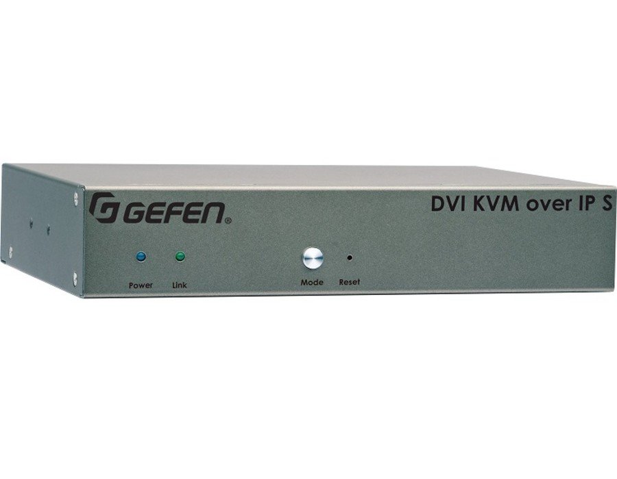 The DVI KVM over IP extends DVI, USB, analog audio, and RS-232, over a Gigabit Local Area Network. Resolutions up to 1920 x 1200 (WUXGA) and 1080p Full HD are supported. HDMI digital audio is also supported when using HDMI sources and displays with HDMI to DVI adapters. Local monitoring of video is made possible by the DVI Local Output connector on the Sender unit. The Sender and Receiver units can be automatically or manually configured to unique IP addresses to allow the connection of multiple Senders and Receivers to the same network. Multiple Receiver units can simultaneously connect to any Sender unit within the network including the Gefen KVM over LAN products with HDMI, DVI, or VGA video, to create a virtual crosspoint matrix of just over 65,000 Sender and Receiver units total, depending on the network bandwidth and number of ports on the network switch (see Note). Each Receiver unit has a built in Ethernet switch and two additional RJ-45 Ethernet ports to allow for the connection of computers and other IP-enabled devices. Each Receiver unit allows the connection of four USB devices with up to 500mA current draw per port, providing access to keyboard, mouse, and other compatible devices. USB 2.0 data rates up to 480 Mbps are supported in addition to backward-compatibility with USB 1.1. Two Channel analog audio can be extended from each Sender to the Receiver units for use with headphones or powered speakers. RS-232 serial control can also be extended between each Sender and the Receivers. Built in web server interface makes set up and configuration simple and intuitive. Any combination of Gefen Video over IP HDMI, DVI, and VGA Senders and Receivers can be used together to create a» Virtual Matrix», where each Sender can be accessed by multiple Receivers. The DVI KVM over IP is perfect for large scale remote workstation access and for digital signage applications.