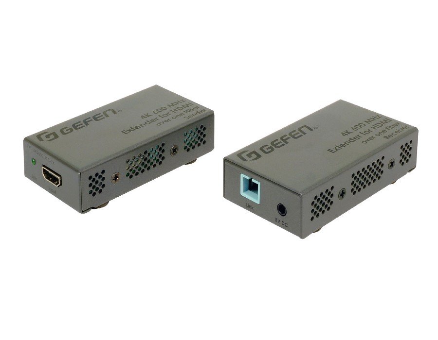 The Gefen EXT-UHD600-1SC is a compact and high-performance solution for extending uncompressed, full-bandwidth HDMI 2.0 audio/video with HDR, up to 200 meters (660 feet), over a single strand of SC-terminated 50/125 µm OM3 or better multi-mode fiber-optic cable. It supports 18.2 Gbps of bandwidth and 600 MHz TMDS Clock frequency, the highest specified under the HDMI 2.0 standard. Full bandwidth support allows the Gefen extender to accommodate resolutions up to 4K Cinema-DCI (4096 x 2160 up to 60 Hz 4:4:4), and 4K Ultra HD (3860 x 2160 up to 60 Hz, 4:4:4) along with HDR (High Dynamic Range). HDCP 2.2 and the legacy HDCP 1.4 are both supported. The EXT-UHD600-1SC also supports 1080p Full HD, WUXGA (1920 x 1200), 3DTV, and Deep Color (up to 1080p resolution). Highest performance multichannel digital audio including 7.1 channels of LPCM and HBR (High Bit Rate) digital audio formats, such as Dolby Atmos®, Dolby® TrueHD, DTS:X™, and DTS-HD Master Audio™ are passed through to the HDMI outputs. There is full electrical isolation between the Sender and the Receiver, meeting the stringent safety and EMC requirements for critical applications. This extender can be powered from sources and displays featuring powered USB ports, or by using external power supplies. The Sender and Receiver are plug-and-play, and work without any set-up. Compact enclosures are easy to install and can be hidden away. Their sturdy metal enclosures help provide further immunity against Electro-Magnetic Interference (EMI) and radiated noise (RFI). Applications include medical imaging, military and industrial command and control rooms, flight simulators, digital signage, gaming, and wherever 4K full-bandwidth uncompressed video or end-to-end electrical isolation are essential.