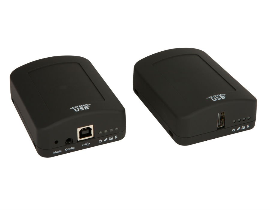 The Intelix DIGI-USB2 extends computer USB 1.1 and USB 2.0 signals up to 100m (330’) over twisted pair cabling. The device can be powered at either the client or host device.