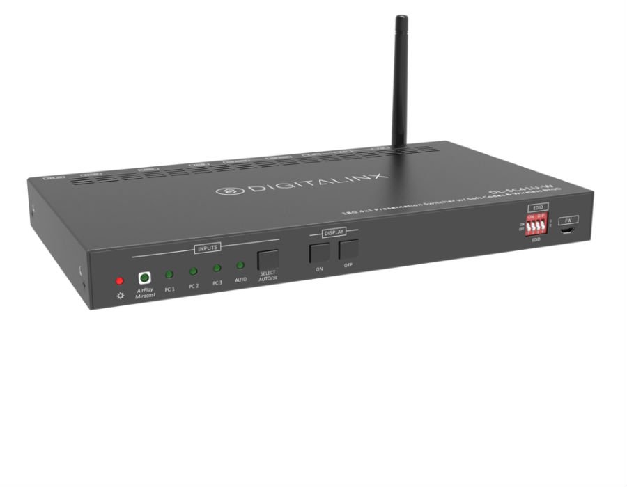 - Conference, Huddle, Training room 4×1 Matrix presentation switcher with Airplay & Miracast built in