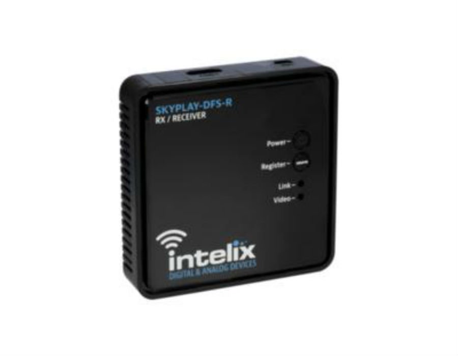 The SKYPLAY-DFS-S can transmit 1080p video with stereo or multichannel audio. The SKYPLAY-DFS-R can transmit IR signals from the remote location to control the source device. The SKYPLAY-DFS transmitter and receiver must be paired together to pass video.